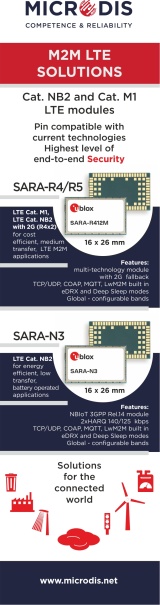u-blox spent few years to develop and bring to the market new technology, which is breaking point for applications where power consumption and link budget of standard cellular products are not good enough. The market leading SARA-N2 series brings Narrow Band Internet of Things (NBIoT) technology to industrial customers, allowing early adopters to be the driving force for deployment, and giving them the opportunity to have a jump start for their designs before the competition. Technology is tested by u-blox already since 2015, with many trial installations worldwide. Engineering samples and evaluation kits are available to order at your local Microdis office.